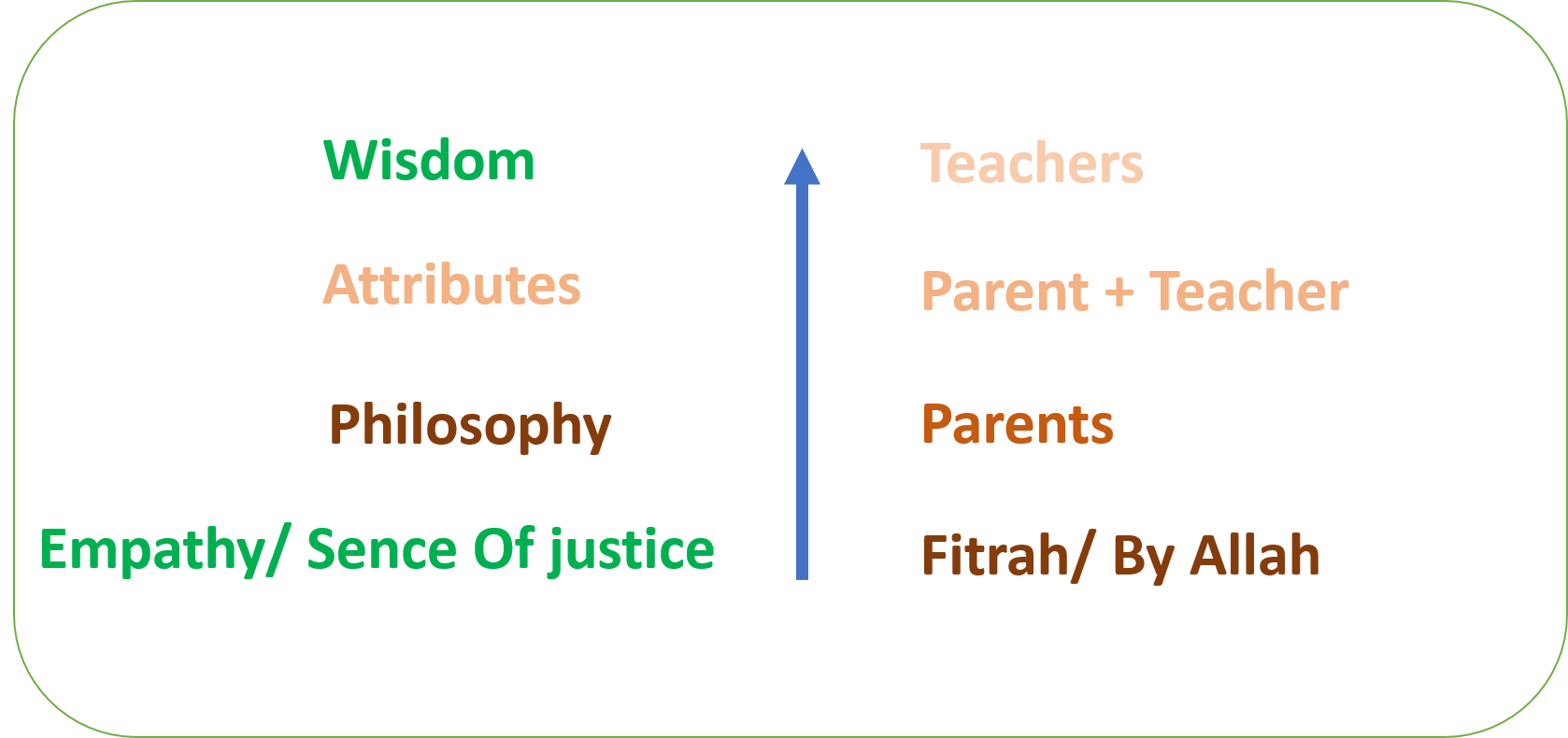 আল্লাহ মানুষকে সহজাত গুণাবলি (ফিতরাহ) দিয়েছেন, যেমন ন্যায়বোধ, দয়া ও সাহস। যদি বাবা-মা ও শিক্ষকেরা সন্তানদের এসব গুণাবলি বিকাশে সাহায্য না করেন, তাহলে তাদের আত্মসম্মান দুর্বল হয়ে পড়ে।
