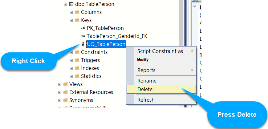 Alter Table tblPerson Drop COnstraint UQ_tblPerson