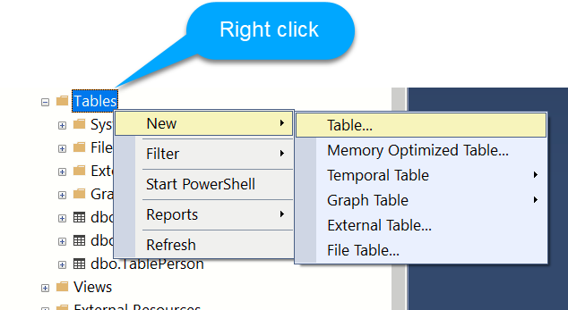 Create Table tblPerson ( PersonId int Identity(1,1) Primary Key, Name nvarchar(20) )