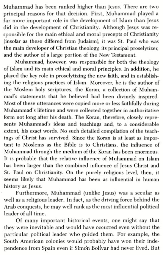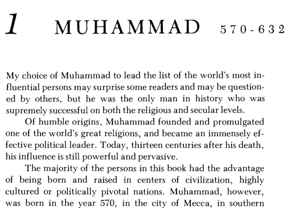 This is a list chosen by Michael H. Hart, from the book "The 100: A Ranking Of The Most Influential Persons In History". He chose people on a ranking of who had done the most to influence the world. I recommend reading the book as it offers an interesting insight into the influence of different individuals. As the author notes, ‘Influential’ does not include a judgement on whether they influenced the world for the better or worse.