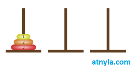 The Tower of Hanoi puzzle was invented by the French mathematician Edouard Lucas in 1883. We are given a tower of Three disks, initially stacked in increasing size on one of three pegs. The objective is to transfer the entire tower to one of the other pegs (the rightmost ), moving only one disk at a time and never a larger one onto a smaller.
