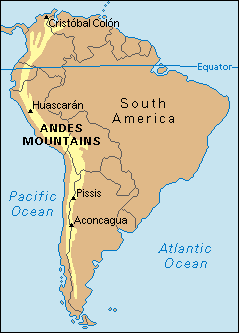 The world's longest above-ground mountain range is the Andes, about 7,000 km (4,300 mi) long. The range stretches from north to south through seven countries in South America, along the west coast of the continent: Venezuela, Colombia, Ecuador, Peru, Bolivia, Chile, and Argentina.